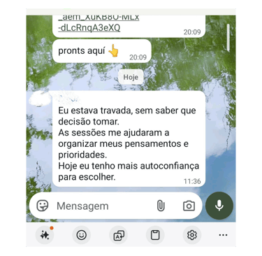 Ao adquirir o procedimento terapêutico, você recebe um guia prático e transformador para romper limitações, fortalecer sua mente e construir, passo a passo, a sua melhor versão — com clareza, propósito e autoconhecimento.