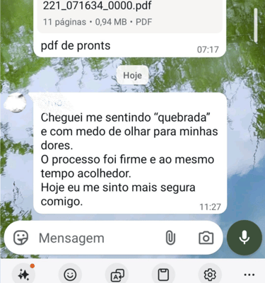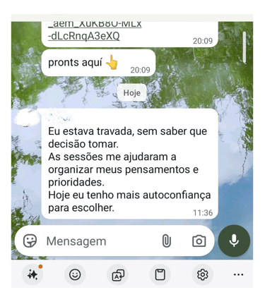 Resultados variam de pessoa para pessoa — mas uma coisa se repete: CLAREZA, LEVEZA E DIREÇÃO quando você começa a se priorizar.